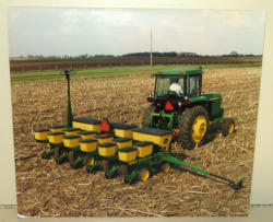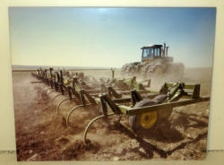 Tractor has water stains, Backhoe has a broken backing, largest is 24"x20", 2x the money
