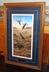 nicely framed & matted; buck is 28"x22"; pheasant is 26"x22"; sell 2x the money