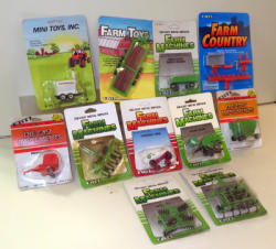 comes w/2 sets of 88s w/mounted pickers & wagons; 1655 & HP; Oliver 88 & White; all packaging has some wear; sells all for one money