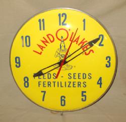 super piece, has advertising on the outside lens and face is has cut-out numbers to let the light shine through, 15" across, would look great in any advertising collection!