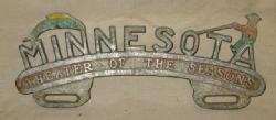 Neat metal sign designed to spin in the wind, has a newer steel bracket made to display, sign is 15"x11", has light wear