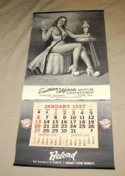 Excellent, has minor wear, full calendar pad with top & bottom metal bands, 23" tall