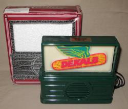 very scarce VERSATILE piece! 10"x10", has a unique liquid crystal thermometer underneath the tractor that seams to be working, box is a little rough, plain white box, neat piece