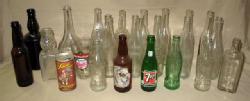 Crate has quite abit of wear, bottles are mostly just plain old bottles, but a few have advertising, all to go