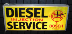 unique sign, looks great lit, Foil has some marks stuck to the face, 20"x9", light fixture part is new, box is original, but fair-poor condition