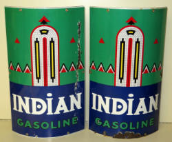 matched set dated 3-40; 18" tall, about 11" wide curved; one has some large chips on the bottom, one has a crease down the right side; good set if you are looking to put on a patina pump, sells 2x the money