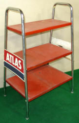 has the Atlas signs on each end, 3-shelves, overall stands 41" tall, some general wear, great shelf for display