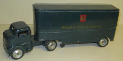 Cab has been repainted and looks good, trailer is original, original decals, looks like it was polished some, good looking truck