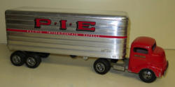 Tin-litho, 20" long, has some rust spots and paint loss on the top, but side graphics are pretty good, not mint, but better than most you see