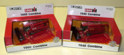 Combine is 1/32nd scale, both very dirty, tractor has broken steering wheel & muffler, both to go