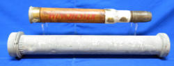 believe Winchester was added to this; includes original canister; very heavy; shell 29.5" long; bottom cork is gone; prefer no shipping due to weight
