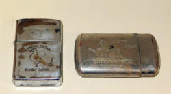 Lighter is marked "US Naval Station - Midway Island" & Match safe is "San Francisco - Panama" w/picture of cannon; both used condition; sell 2x the money
