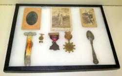 pictures are all of the same soldier; medals & spoon appear original; switch blade knife is a reproduction made in Pakistan; nice set all together; sell for one money
