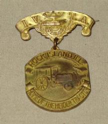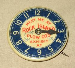 neat piece, 1.5" tall, marked on the back "complements of Rock Island Plow Co.". Top of pin is IVTA Oct 15, 1920, very nice