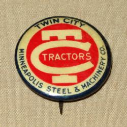 3rd variation! Another near mint example, has a script logo "Twin-City" across the top with a canopied gas tractor graphics, Made by Gustave Fox Co. NEVER Again will you see all three variations of this fob in one auction!