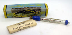 Made by Bornemann Prod. Co; Depth & Temp in one cast; box has some wear; box is 6" long