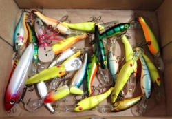 appears to be mostly Storm lures; all like new condition w/a lot of them having the plastic still on the hooks; sell for one money