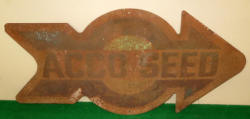Early sign, about 6' long, 33" tall; heavy damage to the wing tip and a crack on the left side, sign is wavy and won't lay flat, recent barn find; I think you could mount this sign to a board and with a little time and effort, have a good piece