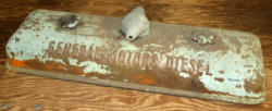 3.5' long, 8.25" tall, original paint is worn, 1/4" steel, was told this came out of a JD Dealership