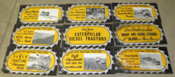 about 36"x28", has some large tears and damage; all these CAT pieces were recently found in an old dealership in Michigan