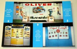 Postcard is actually from the advertising agency, but shows a great Oliver Outboard Motor display, about 9.5"x7", near mint