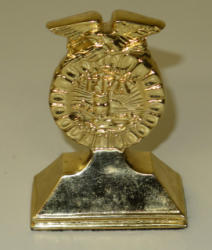 good original, screw back to go on a hat, 2.25" tall, normal wear