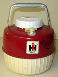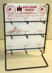 Great piece, super color, 18" tall, 12"wide, has a motor with a spinner inside that makes it look like the fertilizer is coming out of the sack and into the spreader; some light water damage, but overall nice, great display