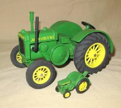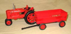 Tractor is clean with metal muffler added, Wagon is also nice, decals flaking some, sells 2x the money