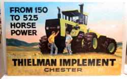 Large & Impressive piece of Steiger advertising! Professionally hand painted on a board, 44"x28"; I would say it was painted back in the 1970's when the Tiger was new as a one-of a kind piece for this dealership; maybe used at a Farm Show or sponsorship; one of the best pieces of Steiger advertising we have ever sold! Thielman Implement was located in Chester, Montana