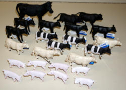 all new, high-quality plastic toys by Tomy, largest cow is 6" long, all to go for one bid