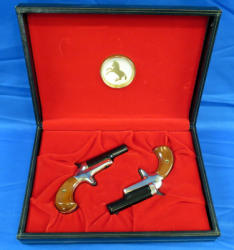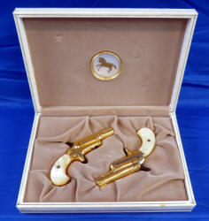 mint set and unfired; nice gold finish; includes display case; SN#'s - 5890LDR & 5889LDR; sell for one money
