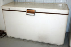 65" long, 26" deep, has the baskets inside, pretty straight original with normal wear, no idea if it works; pickup in Avoca, IA only and bring help when you come to load!