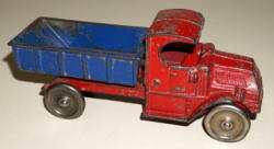 7.5" long, paint is about 75%, wheels are cracked & poor, the dump latch has been replace