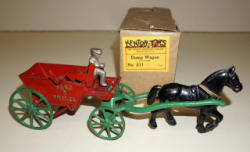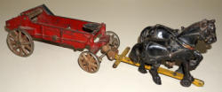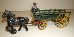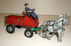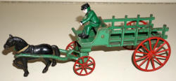 11" long, driver is a replacement, not sure if the correct horse, looks pretty small for this wagon, but paint matches, rates 75% overall