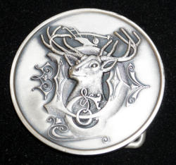 polished brass, about 1/2 the size of a normal buckle, near mint