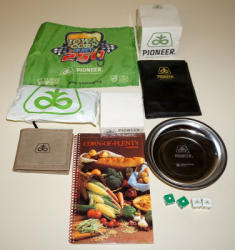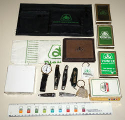 Bag is NOS, Brochure is nice with light water damage, envelope is worn, all to go for one bid