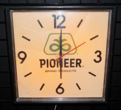 plastic face and frame, used, has a crack in the face and some general wear, lights up, but does not run, as-is, 16"x16"