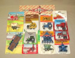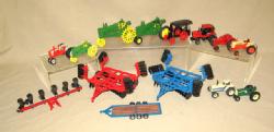 no tractor, box has super graphics with some general wear, toys are about 1/16th scale or smaller