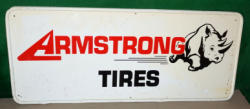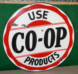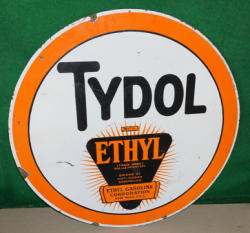 very unusual small size for this sign, has most of the grommets, some rust stains running down from the grommets, but overall clean and nice, some light edge chips; I don't recall ever seeing or selling one in this size; confirmed as an original sign in a very scarce size!