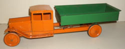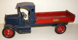 Large & Heavy, similar to the same-era Buddy L Trucks, about 27" long, original blue & red paint with red pinstripes, good original front decals, we did not clean it up, just as it was recently found