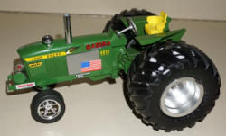 Older Ertl toy customized with different wheels & fender radio; cultivator is scratch built and looks good, mostly plastic; one gauge wheel is loose and the center link on the 3pt needs repaired, pretty minor overall; no shipping, local pickup only