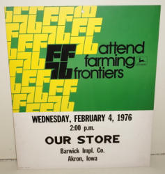 complete with all the flaps, shipped to Barwick Implement in Akron, IA; I found this on top of their parts bins where it had sat for about 50-years, discolored and a little dirty, but still a unique find for the JD toy collector!