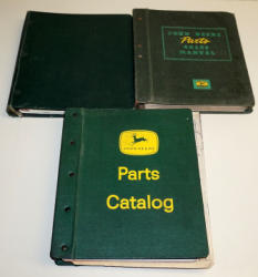 4-leg era binders, but not correct info inside; one is full of 1980's & 90's L&G related literature, one Parts Catalog for a #430 Beet Lifter & other is misc. Non-JD Literature, all to go for one bid