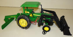 Ertl tractor lightly customized, Loader is all hand made from steel; average build