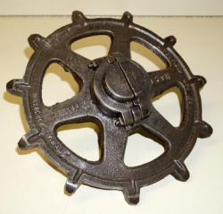 has JD on the back side, advertises Gas Engines on the front, quite a bit of wear and a chipped corner
