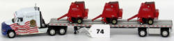 1/64 Scale; DCP Freightliner w/flatbed and 3 Gehl Round Baler Load; Very detailed; includes original box;