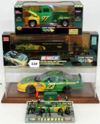 Teamwork, #23 1/18 Scale Race Car, #97 Race 1/64 Scale Transporter, 1956 Ford PU Stock Rod - all NIB except for the Teamwork display; sells 4x the money