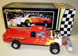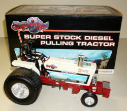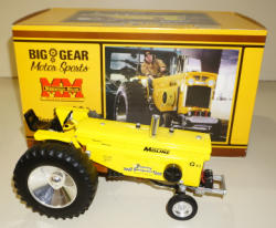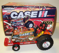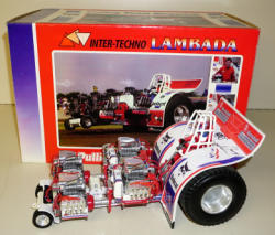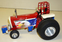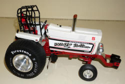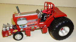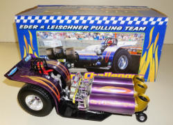 Built from Ertl body, alum side shields, front fuel tank, Chrome rims, simple built puller, but looks fine