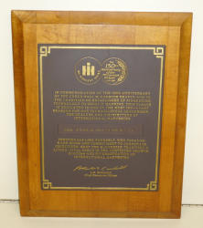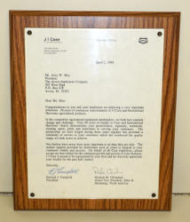 signed by President of Case, mounted to a plaque, 13"x10", excellent