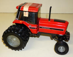Full custom tractor, Wide Tires, V-8 Engine, air-cleaner through the hood, trailer is an Ertl that has been customized to match; I sold this toy Jerry several years ago, believe it was one Gene Ficken built, sells as a family, very nice